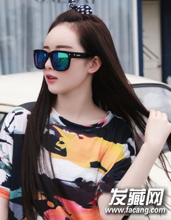 柔顺的长发直发发型,清爽的露额发型与小蝴蝶结的搭配显露出无比的时尚感来,整个造型优雅十分完美的凸显出时尚感来。