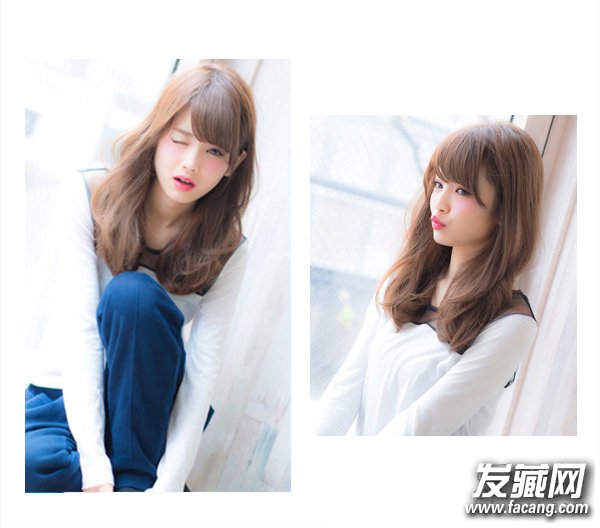 二八分的韩式斜刘海略显神秘,又像领家女孩般的自然甜美,计件的微卷长发蓬松略显动感,加上棕色染发,让MM时尚俏皮。
