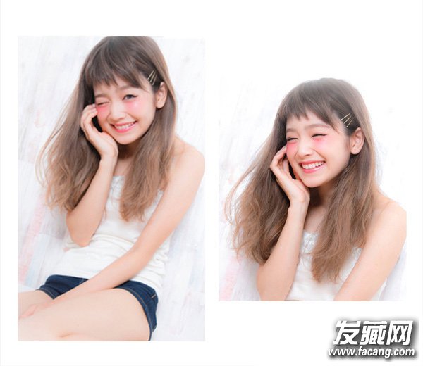 细碎的短刘海既修颜又俏皮,棕色到棕黄色的渐变染发非常个性可爱,让微卷的头发更加的蓬松具有空气感。