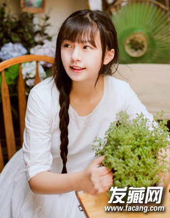 一款适合小圆脸的侧边编发发型,再加上内扣的空气刘海打造出时尚与个性的一面来,甜美可爱。