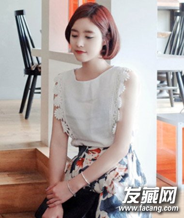 不想留长发,那这样一款短发发型也是不错的选择呢,韩式内扣波波头搭配酒红色染发颜色将皮肤衬得很是白皙透亮。