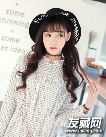 作为一名学生当然不适合大染大烫的造型了,不过这款简单的空气感刘海长卷发还是经比较适宜的,以乌黑亮丽的发色来增添女生的清纯感,再搭配微烫形式的长发更添活泼甜美可爱感。
