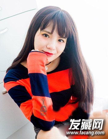 很显清纯气质风式的一款女大学生发型图片,以微是凌乱感的齐刘海造型来增添女生的活泼可爱风,而清新飘逸的长直发更添清纯学院风。