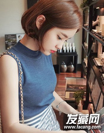 一款清新的中短发发型,清爽的无刘海发型的设计与棕色系的染发颜色搭配起来显露出个性与气质的一面来。而且整个造型显露出职场女性的知性范来。