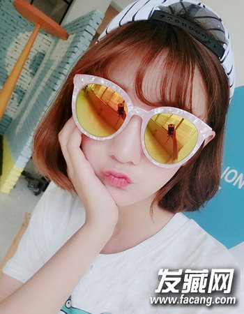 甜美的空气刘海中短发发型,微微的烫发处理搭配上空气刘海更显时尚感,而且红棕色的发色自然清爽尚。
