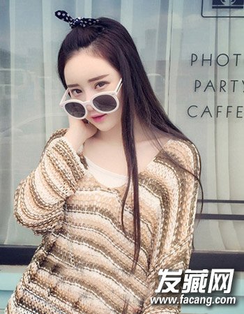知性的针织衫与柔顺的长发直发发型搭配起来,可爱的苹果头又透着小小的俏皮时尚来,甜美时尚。