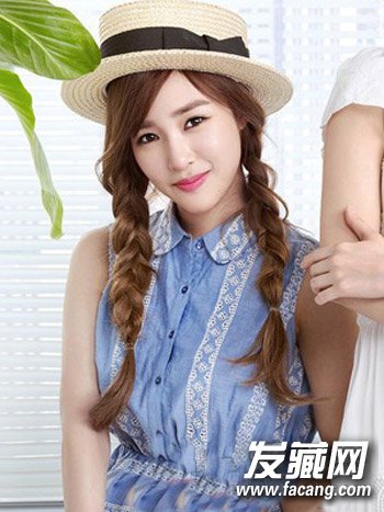 韩流女生偏爱的一款女生清爽扎发设计,挑染色长发扎蓬松感双麻花辫发型,简单扎发时尚清新。