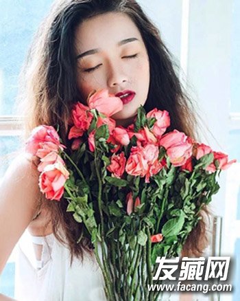 发量少的MM可以尝试的一款蓬松烫发发型,露额的卷发发型搭配深棕色的挑染发色衬托肤色,披肩发配合甜美妆容韵味十足。