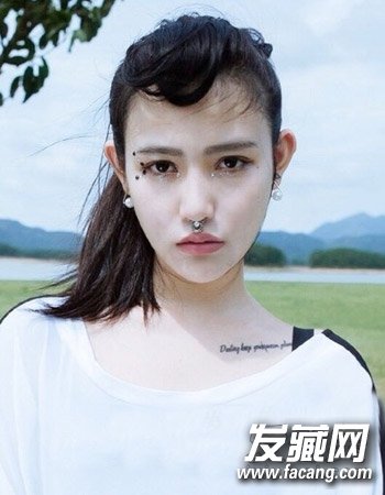 这一款时尚又个性的高马尾扎发发型的设计,蓬松的前额的造型打造出个性与时尚的一面来,头顶的蓬松感设计完美的凸显出时尚感来。