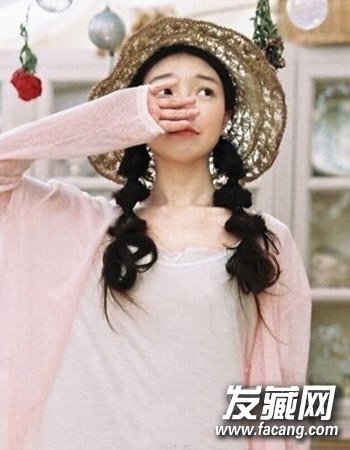 清爽的露额发型的设计与可爱的灯笼辫打理,清爽的露额发型与好看的帽子搭配起来显露出时尚感的一面来,整个造型优雅甜美。