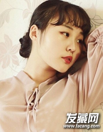 甜美的空气刘海与时尚的盘发发型搭配起来勾勒出别致的时尚感来,而且蓬松的刘海设计完美的勾勒出时尚与个性的一面。