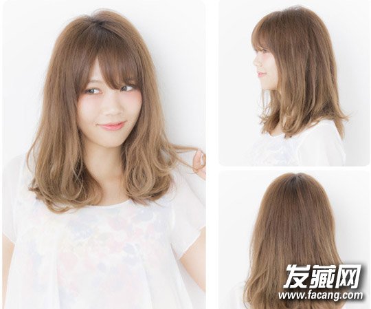 斜分的刘海,内扣弧度的发尾,这是一款很有瘦脸效果的梨花中长卷发,搭配亚麻黄的发色更显时尚风范。