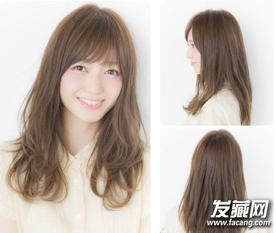 这款中长卷发的小弯短刘海,简单又清新。顺滑的发丝衬托出精致的五官,使整体形象显得更加温柔有气质。