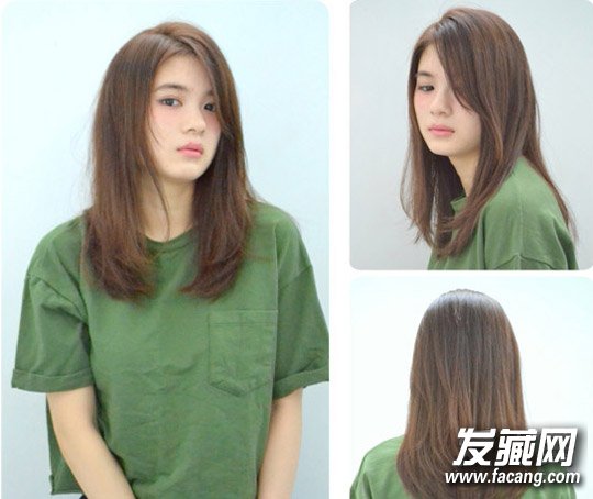 这款中长直发的侧分刘海自然散落,一侧微微挡眼,略带一种慵懒感。发尾的内扣带出一种别致感和时尚感。
