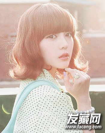 厚重感平刘海与中短发蛋卷头搭配起来不仅时尚而且勾勒出无比的时尚感来,而且发尾的外翻显露出无比的时尚感来,发尾的外翻也同样时尚。