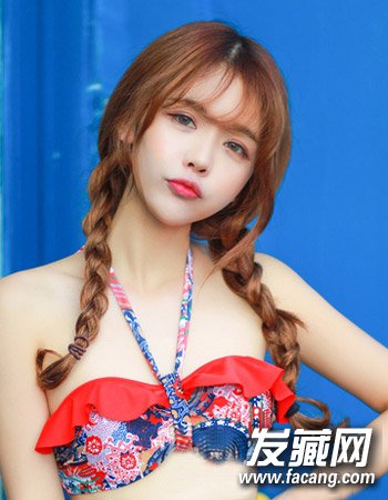 清新灵动感十足的空气感刘海造型设计可是最显女生的甜美可爱风的了,再搭配时尚的棕红色染发颜色更将女生的肤色衬托得白皙红润,与精致的双马尾辫相搭同样清新感十足。