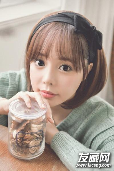 发型2 空气刘海非常适合短发造型,大蝴蝶结发箍减龄可爱,似邻家少女清新甜美。