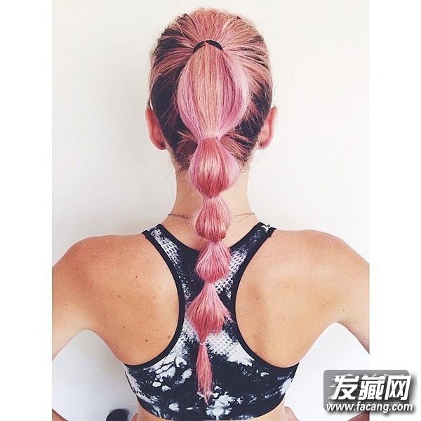 异型马尾 马尾是最有活力的健身发型之一,但是甩来甩去未免过于碍事,用皮筋将马尾扎起,简单好看。