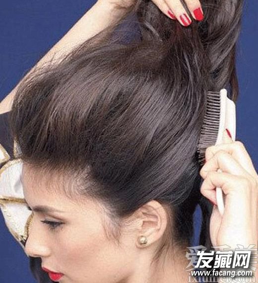 STEP3:上面的头发刮蓬松后,将上下两层头发合在一起,然后将头发向上顶一下,这样头顶的头发就显得比较立体,整个造型更加好看。