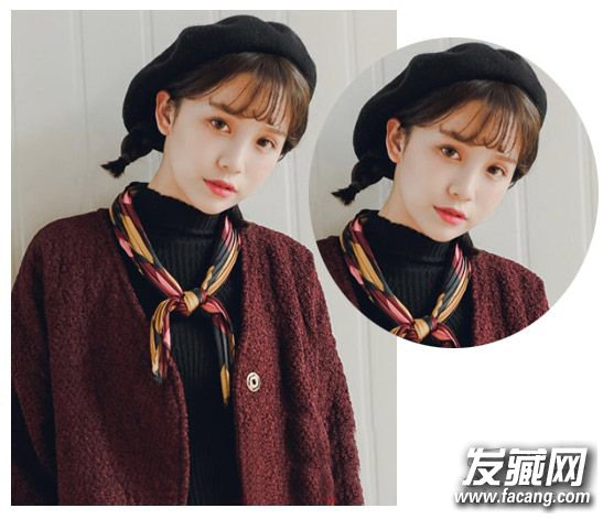这一款时尚的复古造型设计颇显森女风,甜美的空气刘海与双编发颇有少女负,而且甜美的内扣刘海抢眼。