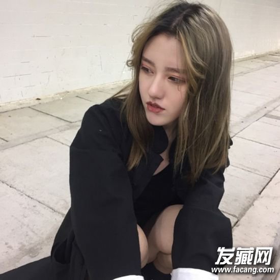 个性又拉风的中长发,中分刘海染成渐变的亚麻青色潮感十足,发根颜色不同感觉更吸睛。