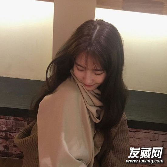温柔女生必备的中长发微卷造型,空气刘海+微卷烫发甜美淑女,经典大地色搭配很显气质。