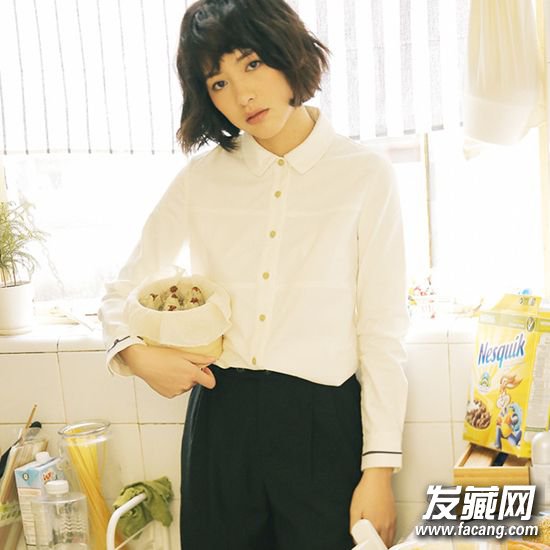 日系复古风波波头,短刘海加上不规则的短发增加俏皮感,清纯又减龄,适合文艺路线的妹子。