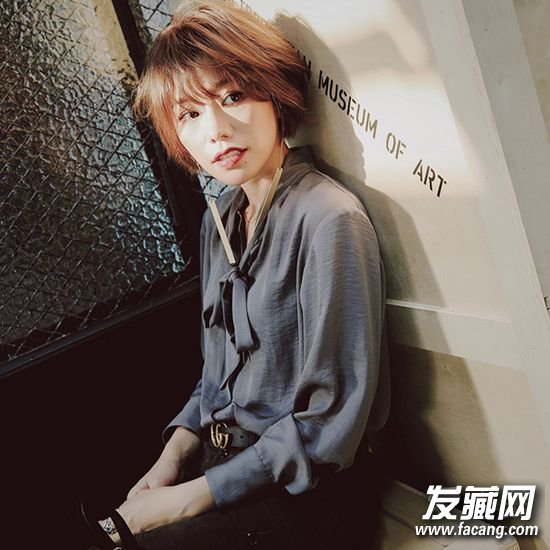 略显成熟的小短发,齐耳短发的款式加上烫发和栗棕色的染发效果,显白更减龄,衬托好气色。