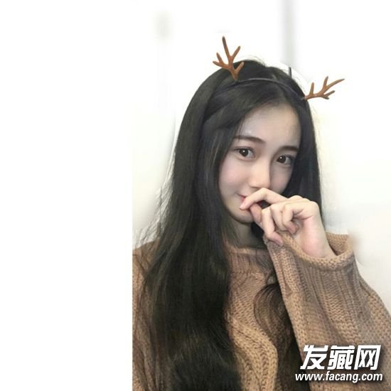 韩式大长发,头发吹得很蓬松,营造出温柔感,戴上发箍更是可爱又俏皮。