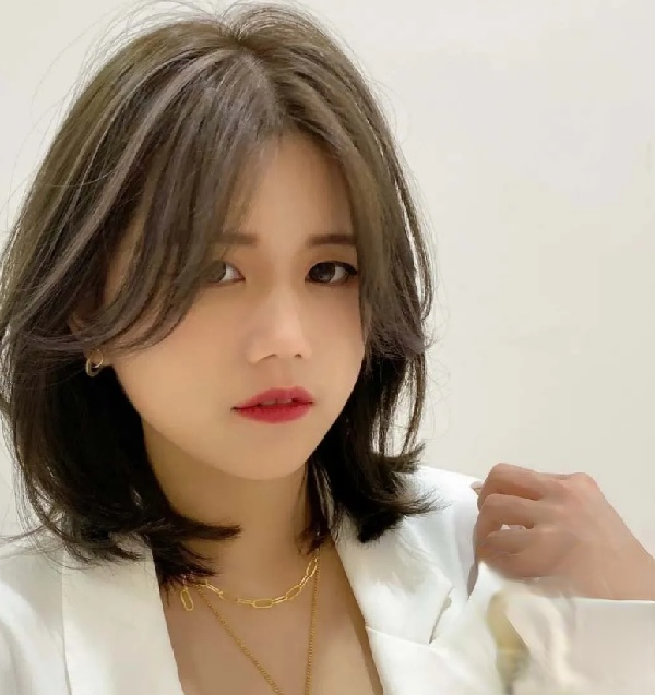 偏分的长刘海稍微烫些许卷,及锁骨的中长发内扣弧度,制造出几分优雅性感女人味。