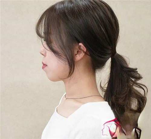 也可以简单地扎一个低马尾,保持整个发型地蓬松度,需要注意地就是要在脸部周围地发际线留下一些碎发来修饰脸型。