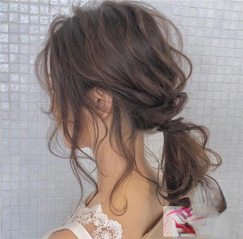 这款头发编起来也很简单:首先把头发分成三部分,把中间的头发绑成马尾。然后拉松头顶头发,营造蓬松感。接着先从左边拿起一小束头发并以扭纹的方式绑好,再围住发圈。把右边同上步骤一样就可以了。