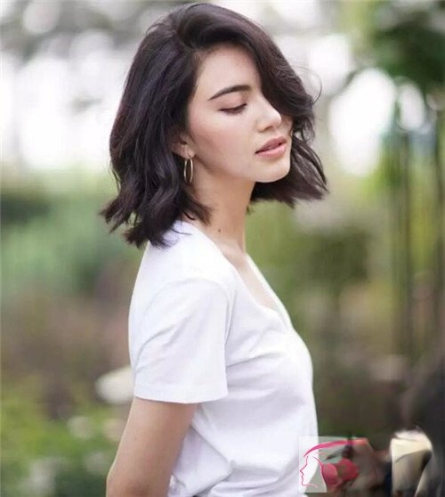 人鱼卷短发,非常简单的发型,只是将发尾制造整齐外翘的弧度。