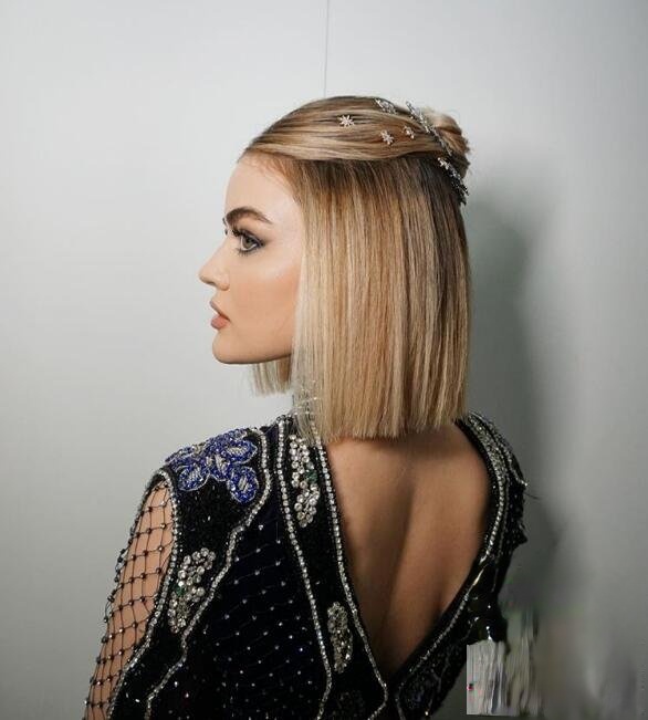 中长发最怕乱,因此你可以将头发用造型器具,帮助头发柔顺变直(尤其自然卷的人),然后在头顶处抓一撮4/1的头发,绑一个优雅的公主头,然后也可夹上华丽的发饰,这款发型就算出门参加派对也很OK。