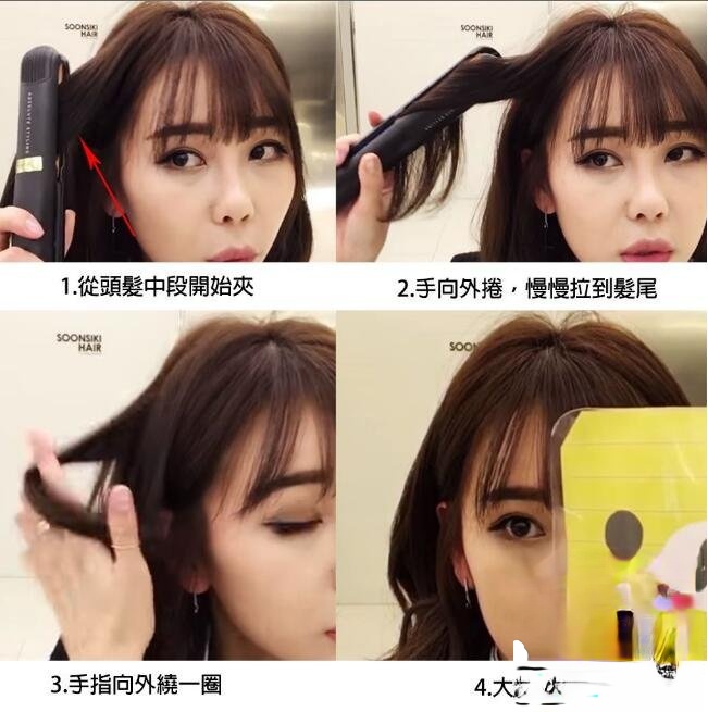 在夹的时候,建议大家从头发中段夹,手慢慢向外卷并拉到发尾,接着用手指绕卷度做加强!是不是很简单~细软发的人,建议在夹头发的时候可在发尾多停留2秒!