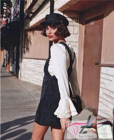 复古风近年来颇受女生们欢迎,短发打薄再烫卷,戴上帽子很有文艺女生的感觉。