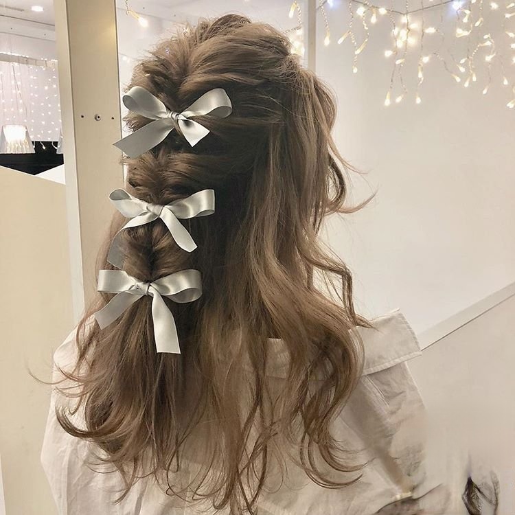 一个蝴蝶结不抢眼,那就来两个吧,像是一个精心包装的礼物,是不是特别适合约会的时候扎呢,小心机。