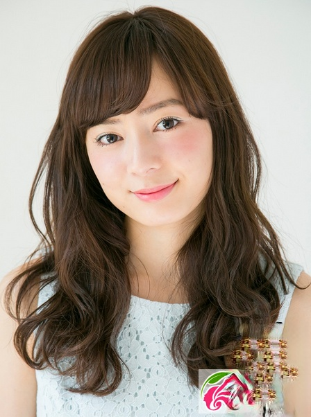 淑女感气质小清新的斜刘海,搭配上波浪小卷发,自然黑色也很美好。