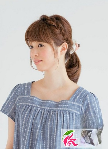 这款编发马尾辫非常淑女可爱,同样的编发还可以扎丸子头和半扎发,斜刘海的妹纸学起来吧!