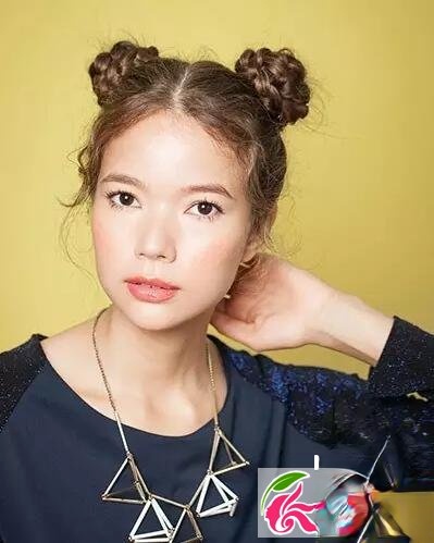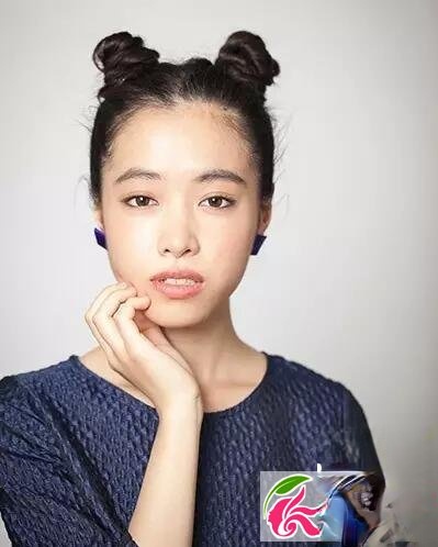 像张雨绮的全扎式的“哪吒头”,可爱俏皮,瞬间达到减龄效果。双丸子头的角度要适中,在头的顶部两端扎上两个蓬松的丸子头,注意过大易变成大头娃娃,太小易显脸型的缺点。所以,一定要适中哦!