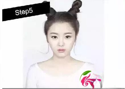Step5:将两边的头发尽量扎对称,一款少女十足的哪吒头就齐活了!