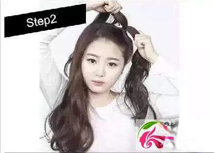 Step2:把头发分成左右两部分,分别在两侧扎一个高高的马尾辫,将马尾辫从中间分开。