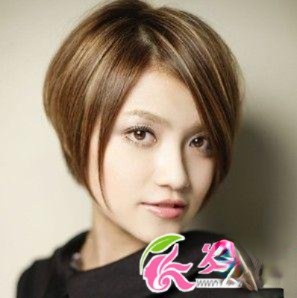 优雅轻熟女的偏分短发,小露的饱满额头,给人感觉自信干练。柔顺的长刘海发丝,紧紧贴在额头,沿刘海衔接的侧发发丝,把脸颊修饰得小巧精致,棕黄的发色匹配黑色的服装,带来优雅的熟女意味,清新柔美。