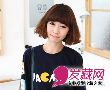 动感甜美的韩式短卷发,加内扣弧度齐刘海搭配既有萌系味道而又有萝莉气息。