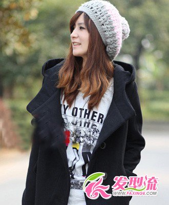 这款介于直发和卷发之间的女生发型,微卷的发卷给我们营造出灵动的青春范。富有生机的发卷散落在锁骨间,飘逸动感又性感。温暖的针织线帽和深色的风衣外套搭配出时尚明星范,突显出活力。