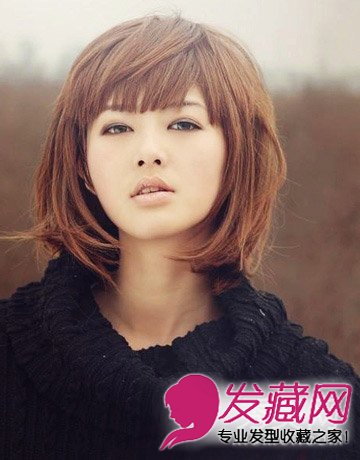棕咖色的染发给人眼前一亮的感觉,尤其是层次内卷的短发,与刘海完美结合修饰圆脸型,时尚气息倍增。