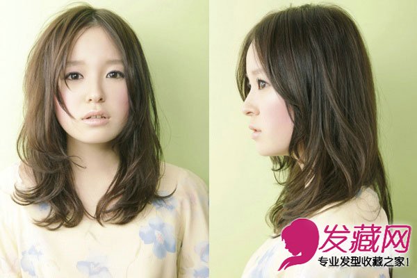 中分发型让大饼脸变小脸,轻薄的发尾让造型更加有灵动感。