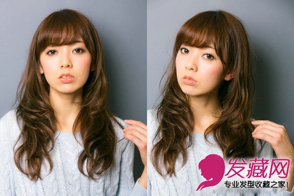 烫发刘海搭配蓬松的长卷发,减龄效果明显。