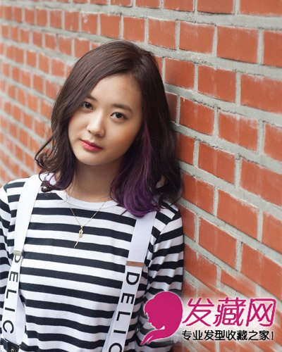 侧分齐肩卷发有很好的修颜效果,贴合脸型,向外卷的紫色发尾让整款发型充满灵动感。