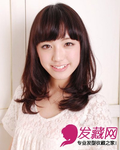蓬松的卷度,厚重的刘海与两侧贴合脸部的发丝。让胖圆脸女生的脸部看起来小巧。